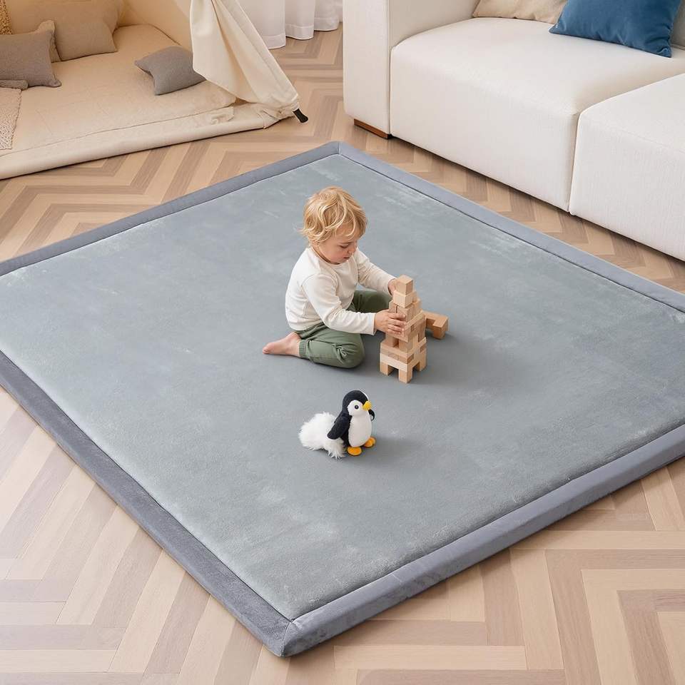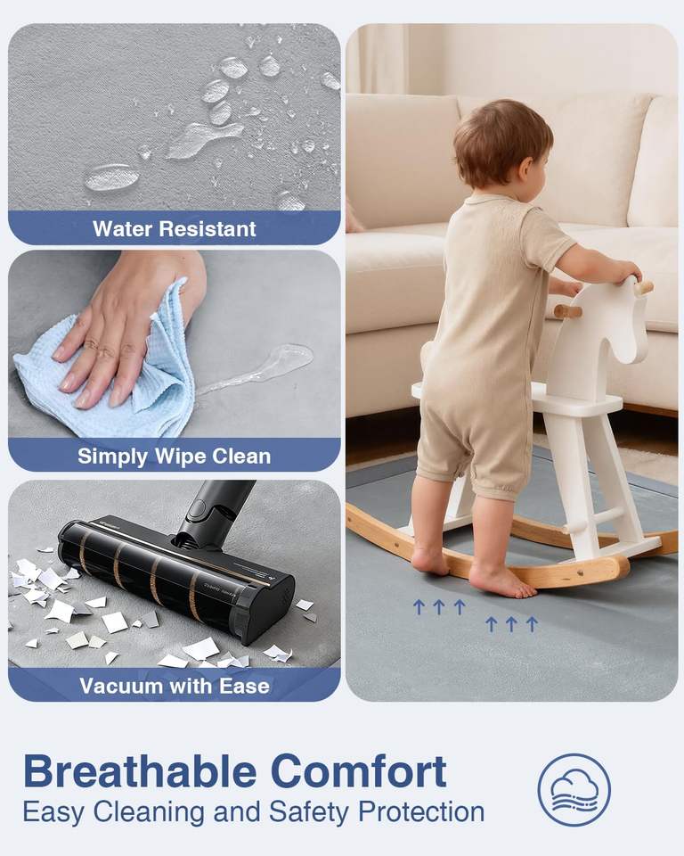 แผ่นรองคลานเด็กแบบพับได้ ขนาด 47x47 นิ้ว - แผ่นรองคลานโฟม หนังวีแกนปลอดสารพิษสำหรับเด็กวัยหัดเดินและทารก