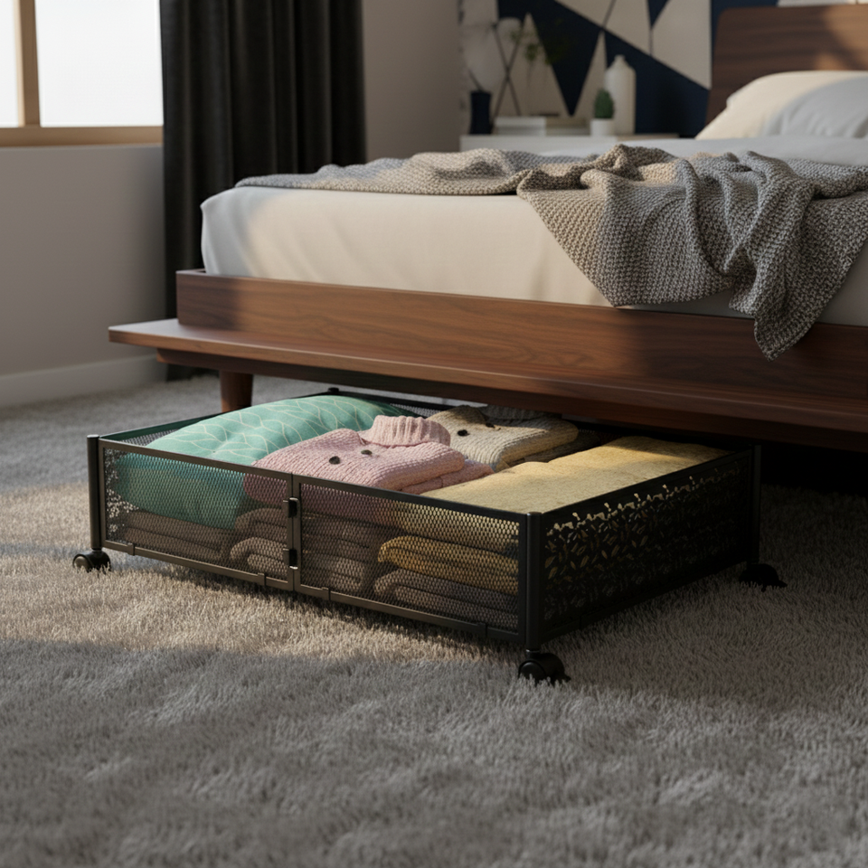 Storage Scene:Bedroom, shoe box, under bed, storage room