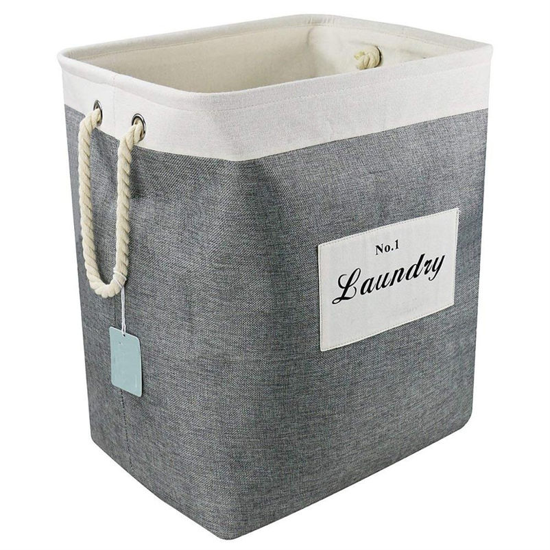 ตะกร้าผ้าลินินผ้าใบแบบพับเก็บได้สำหรับใช้ในห้องน้ำพร้อมที่จับ