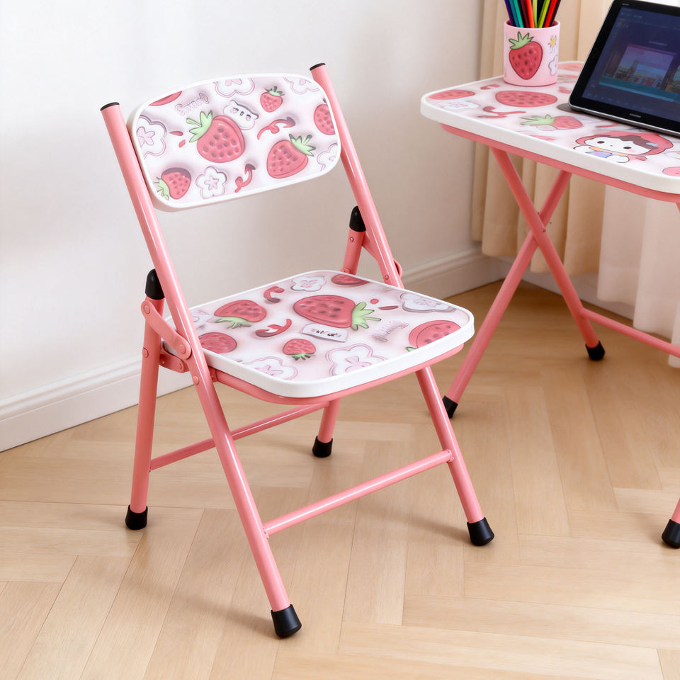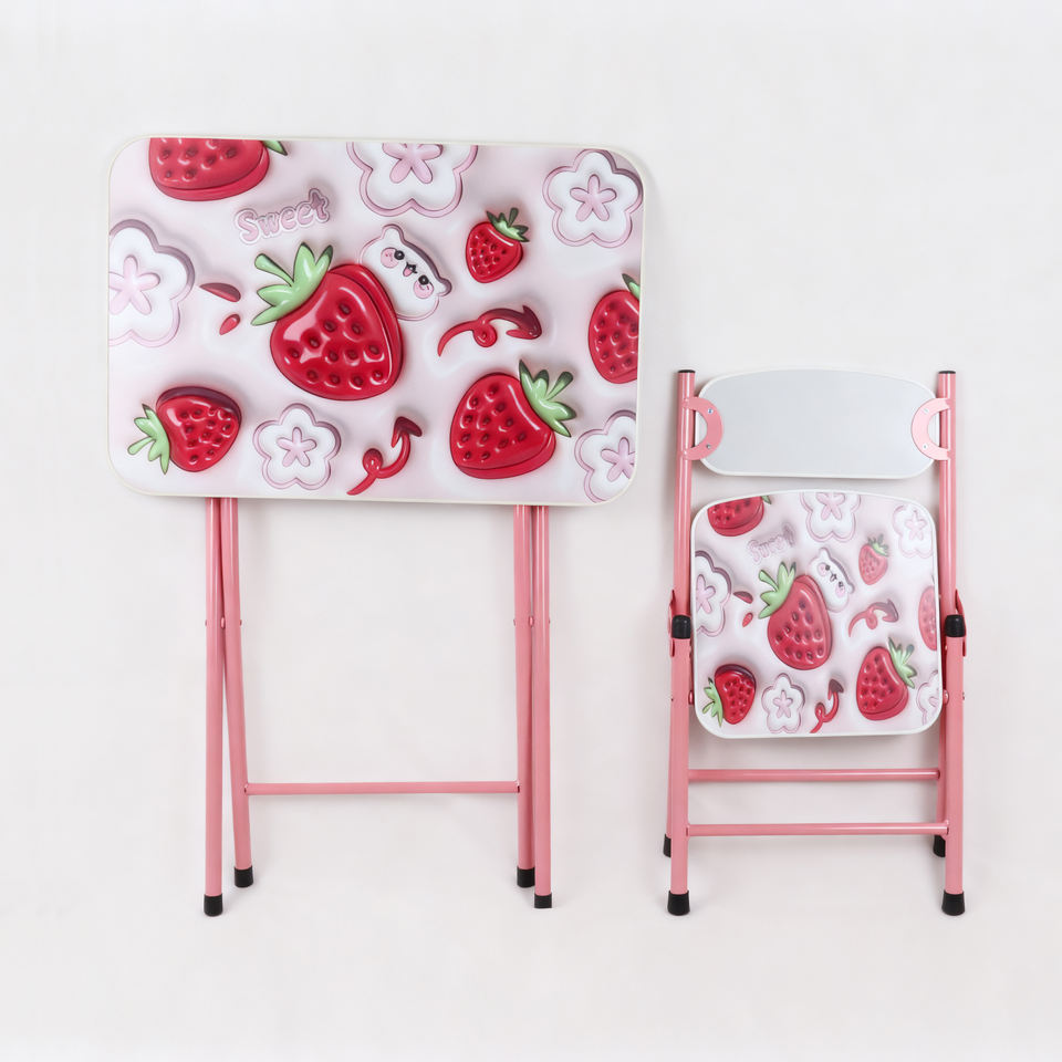 โต๊ะและเก้าอี้เด็กแบบพับได้ เฟอร์นิเจอร์เหล็กเรียบง่ายสำหรับใช้ในบ้าน โต๊ะและเก้าอี้แบบพกพา ชุดโต๊ะและเก้าอี้ MDF