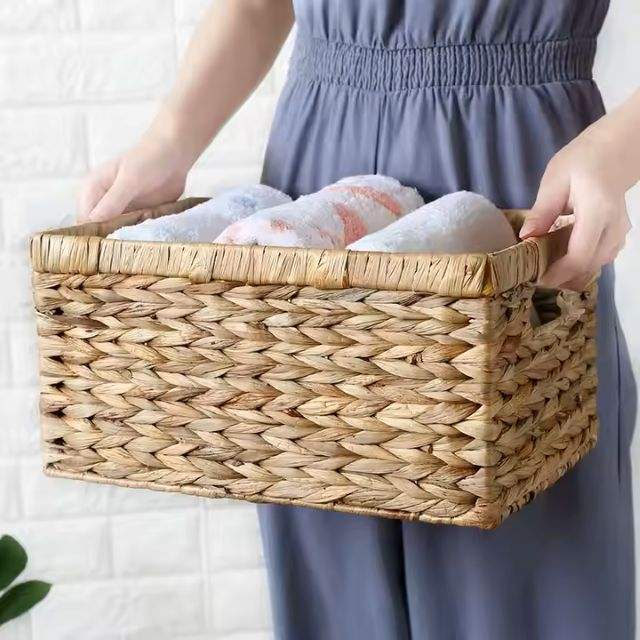ตะกร้าผักตบชวาพับได้แบบเรียบง่าย ทำด้วยมือ เป็นมิตรกับสิ่งแวดล้อม ใช้เก็บของได้ ตกแต่งได้ ทนทาน น้ำหนักเบา ประหยัดพื้นที่