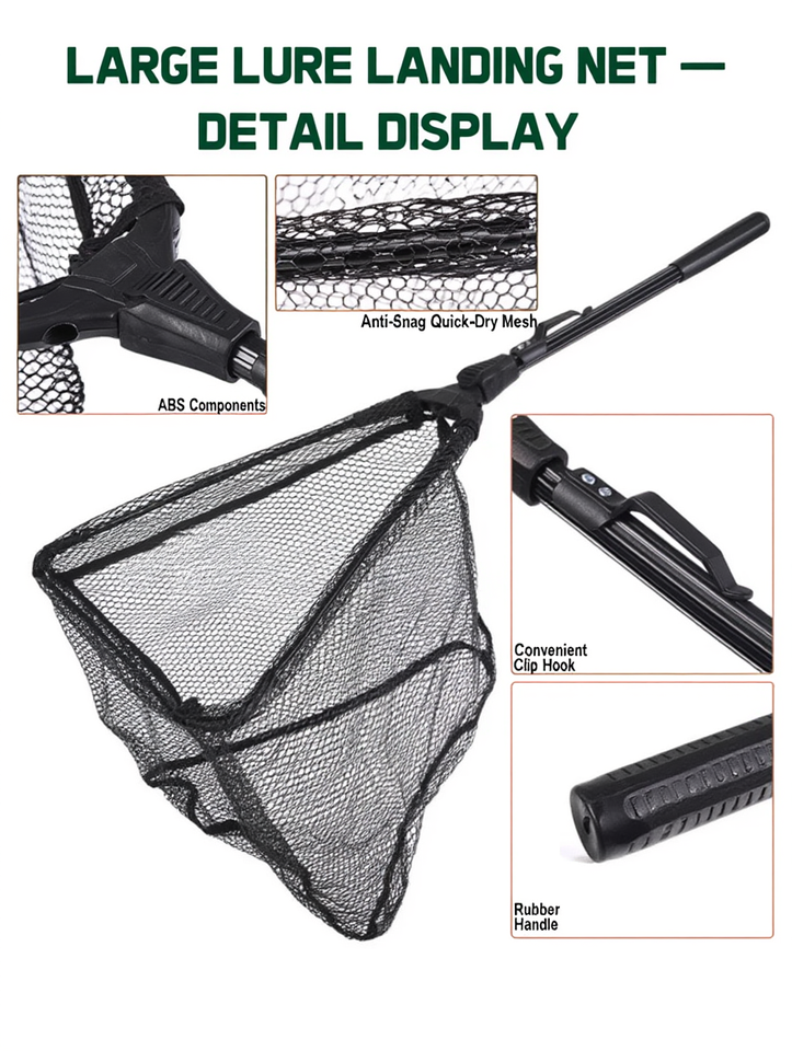 ตาข่ายจับปลาแบบพับได้ ด้ามจับอะลูมิเนียมแบบยืดหดได้ ตาข่ายเคลือบยาง ลอยน้ำ สำหรับเรือคายัค ตกปลาแบส ปลาเทราต์