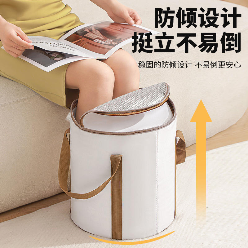 อ่างแช่เท้าพับได้แบบมีฉนวนกันความร้อนทรงกลม ทำจากไนลอน สำหรับใช้ในบ้าน ถุงแช่เท้าสำหรับผู้ใหญ่