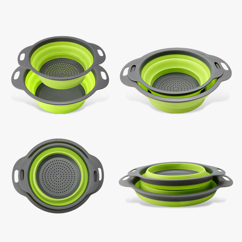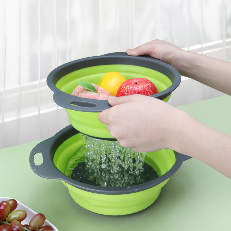 กระชอนพับได้สำหรับผลไม้และผัก พร้อมตะกร้ากรองน้ำ ดีไซน์ทรงกลมแบบยืดหดได้ สำหรับใช้ในครัว