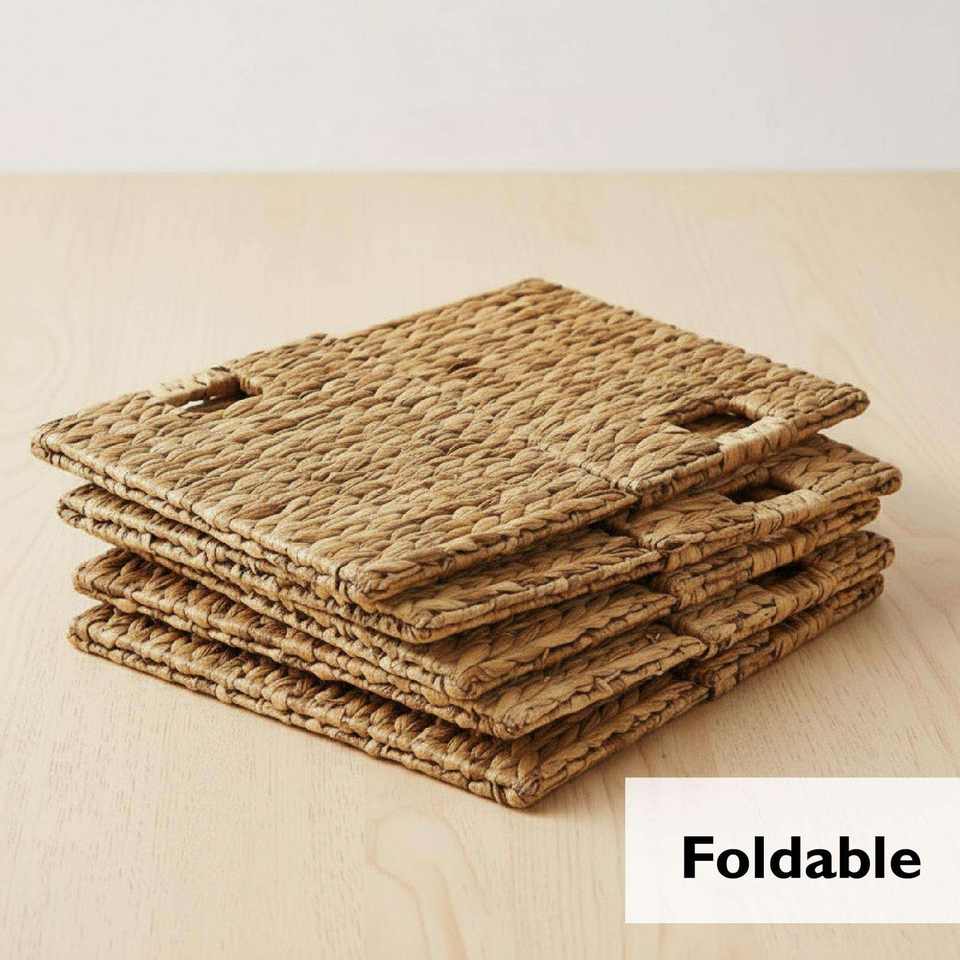 ตะกร้าเก็บของพับได้ทำจากหญ้าทะเลสานด้วยมือ สำหรับของเล่นและการจัดระเบียบบ้าน – ตะกร้าใยธรรมชาติรักษ์โลกสำหรับห้องเด็ก