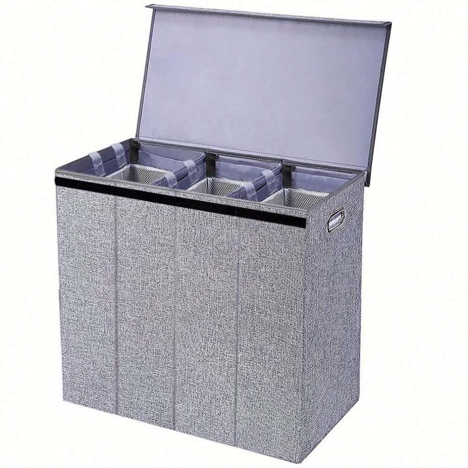 ตะกร้าผ้าพับได้ ตะกร้าใส่ผ้าขนาดใหญ่ แบบมีช่องแยกสามช่อง ตะกร้าพับเก็บได้สำหรับใส่ผ้าสกปรก