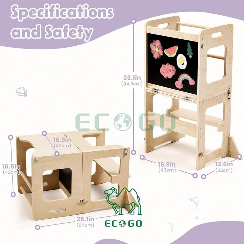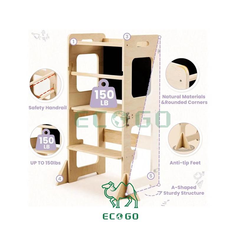 บันไดเด็กแบบพับได้ทันสมัย พร้อมกระดานดำ โครงสร้างป้องกันการล้ม ทำจากไม้ไผ่และไม้เนื้อแข็ง เป็นมิตรกับสิ่งแวดล้อม ทนทาน เหมาะสำหรับใช้ในครัว