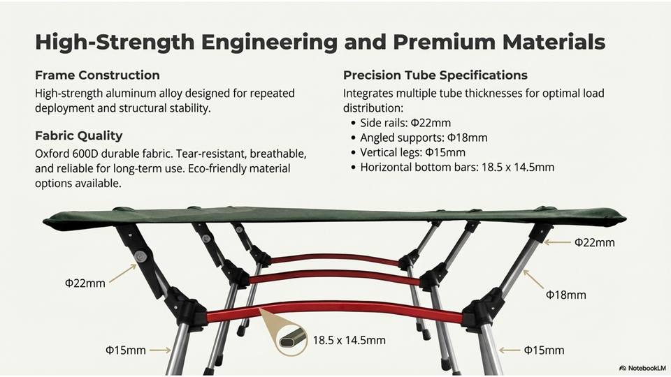 เตียงพับได้ น้ำหนักเบา โครงโลหะทันสมัย สำหรับโรงพยาบาล ตั้งแคมป์กลางแจ้ง พร้อมผ้า Oxford 600D และกระเป๋าเก็บของ