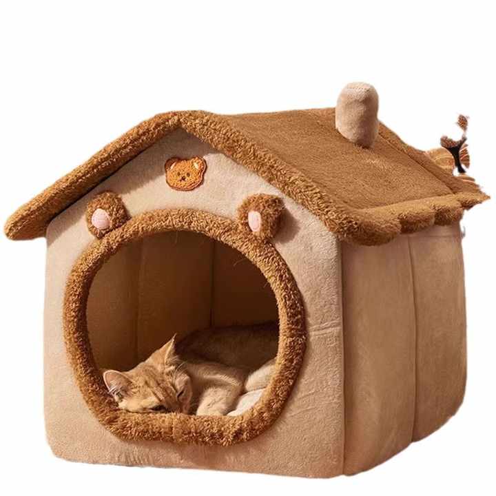 บ้านสัตว์เลี้ยงแบบพับได้เหมาะสำหรับลูกสุนัขแมวขนาดเล็กถึงขนาดกลางบ้านแมวที่ถอดออกได้บ้านสุนัขถ้ำสัตว์เลี้ยงบ้านเตียง