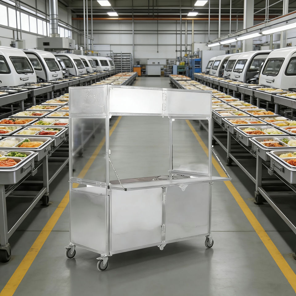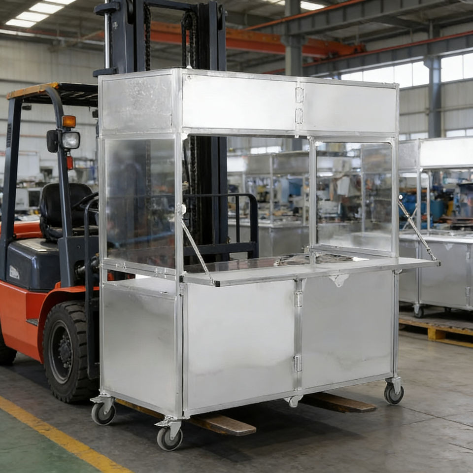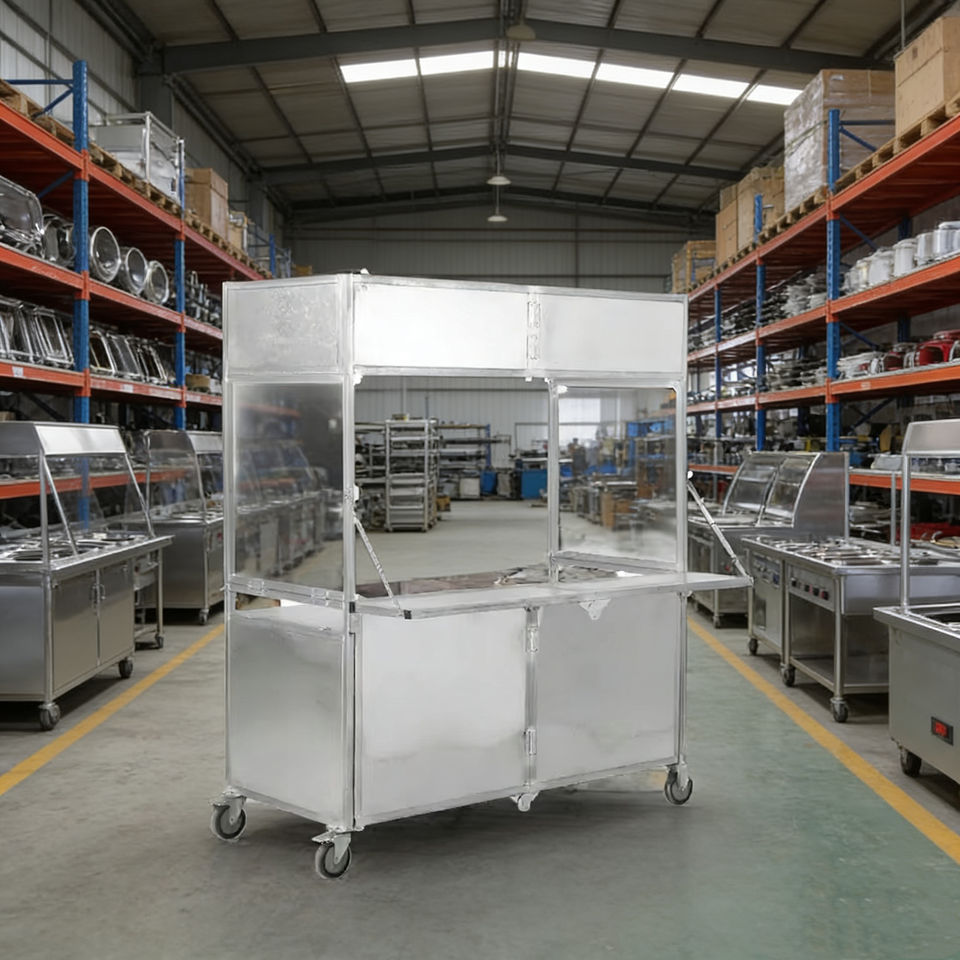 รถเข็นขายของเคลื่อนที่แบบพับได้ สแตนเลสสตีล สี่ล้อ สำหรับขายกาแฟ ไอศกรีม ฮอทดอก ขนมหวาน ขายตามท้องถนน