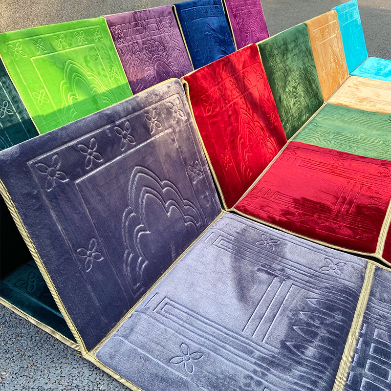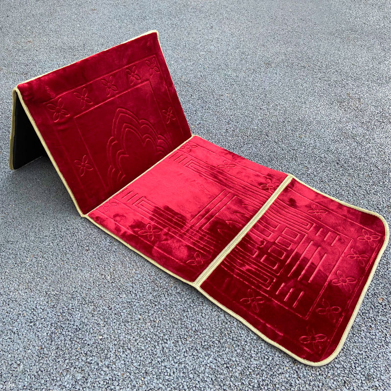 เสื่อสวดมนต์พับได้พร้อมแผ่นรองด้านหลังหนาบุนวมเพื่อความสบายเป็นพิเศษและกระเป๋าโท้ทสำหรับการเดินทางที่ง่าย-เหมาะสำหรับ jumah, ramadan, hajj