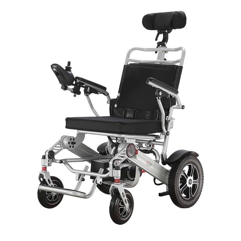 รถเข็นไฟฟ้าพับได้ปรับเอนได้สำหรับผู้สูงอายุ แบตเตอรี่ลิเธียม ระยะไกล ขับเคลื่อนอัตโนมัติ ได้รับการรับรองมาตรฐาน CE โครงสร้างอลูมิเนียมอัลลอยด์ รับประกัน 1 ปี