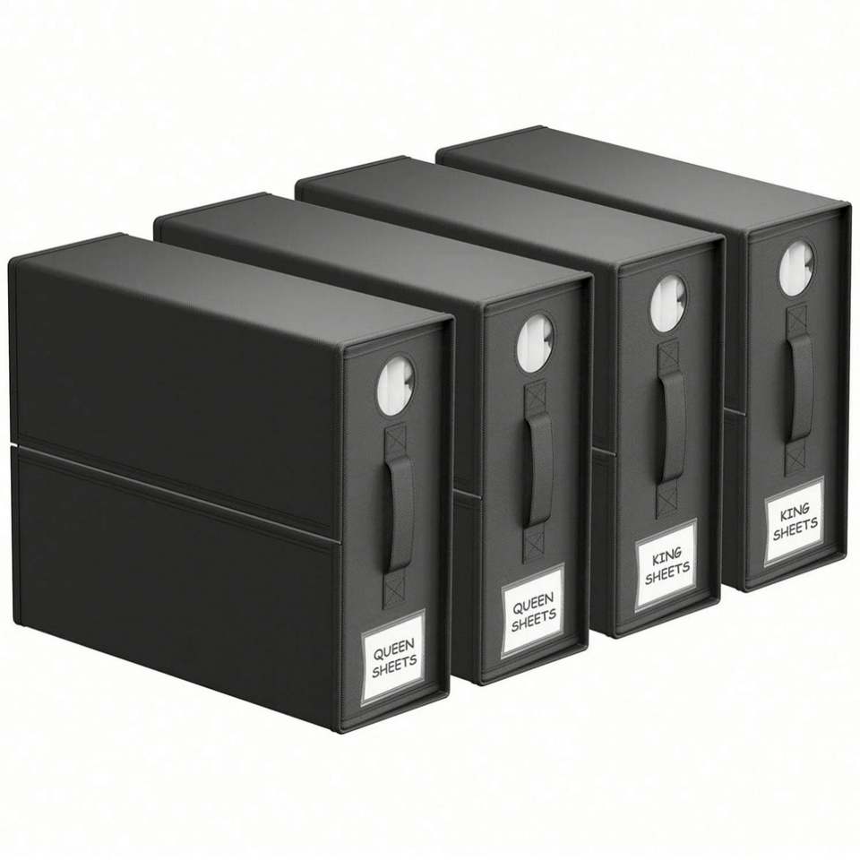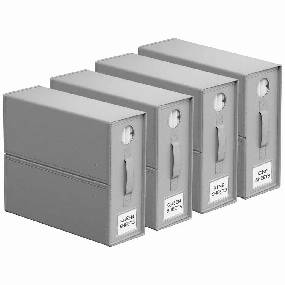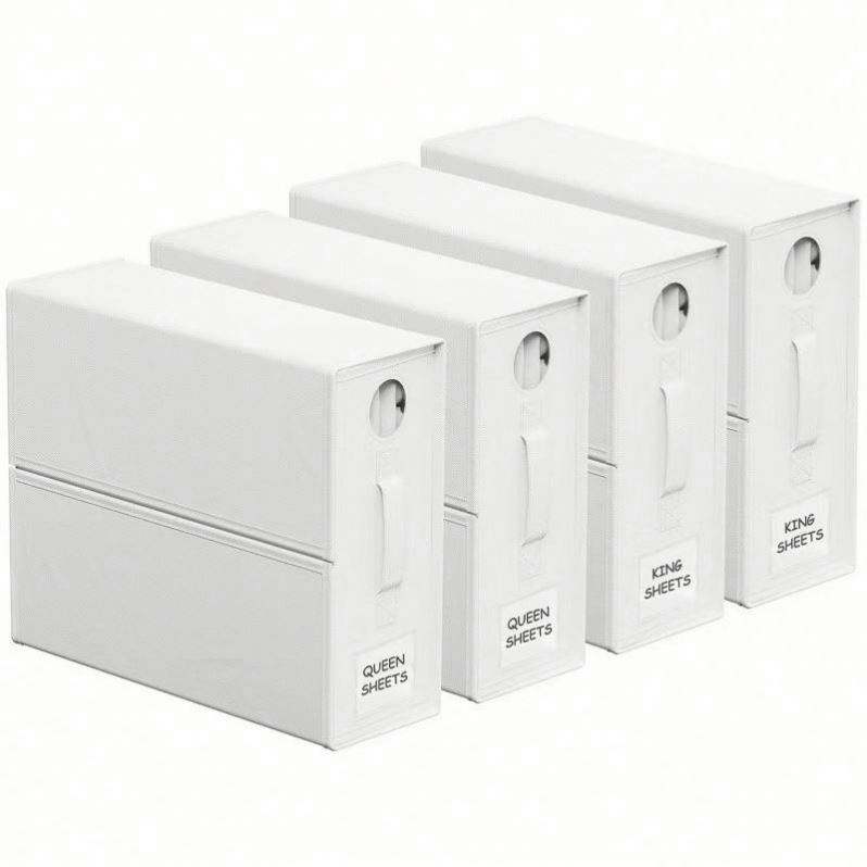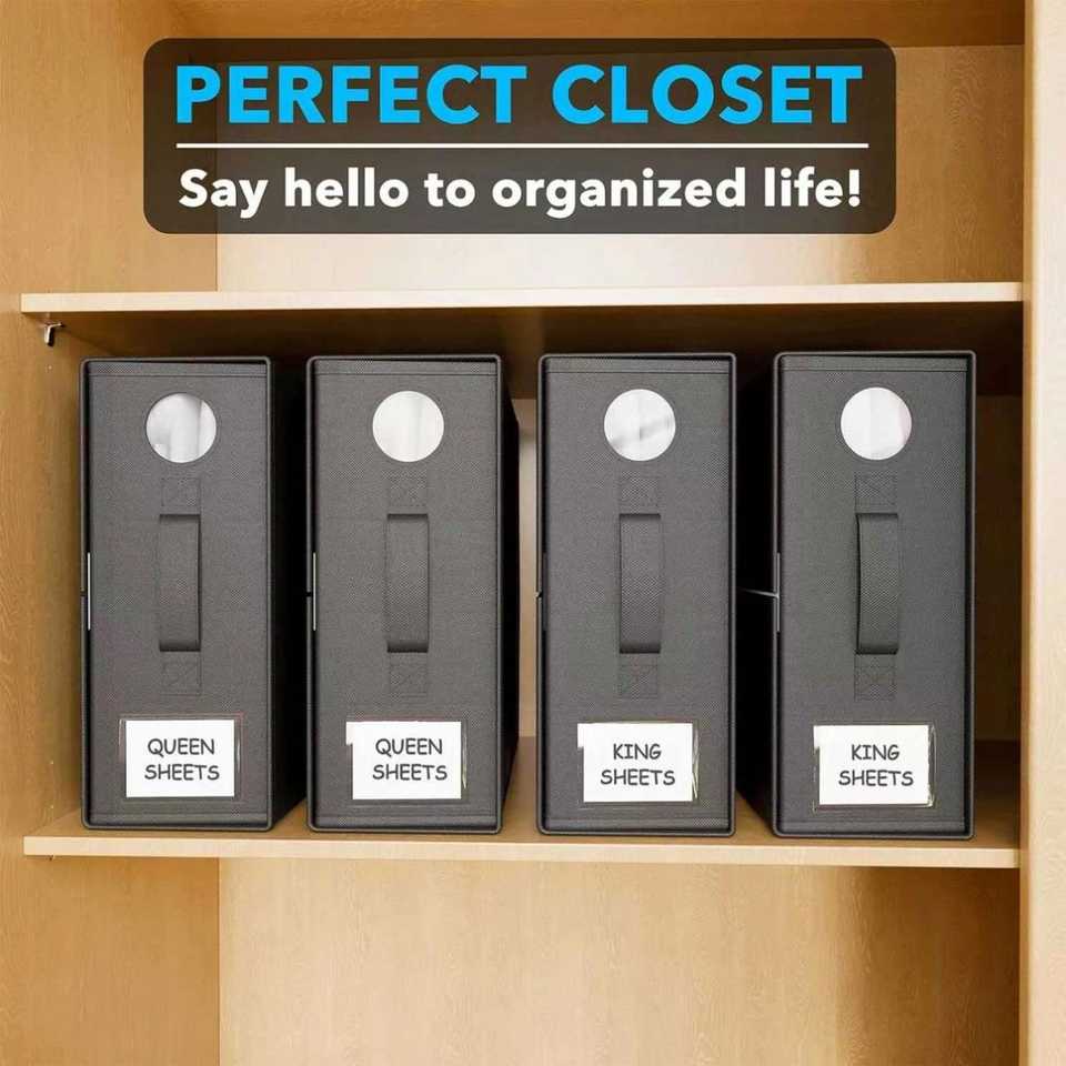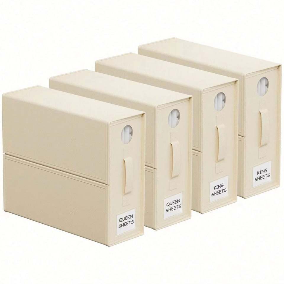 กล่องเก็บผ้าปูที่นอนแบบพับได้ กล่องจัดระเบียบผ้าปูที่นอนและที่เก็บของ กล่องเก็บผ้าปูที่นอนแบบพับได้พร้อมหน้าต่างและป้ายสำหรับตู้ผ้าปูที่นอน
