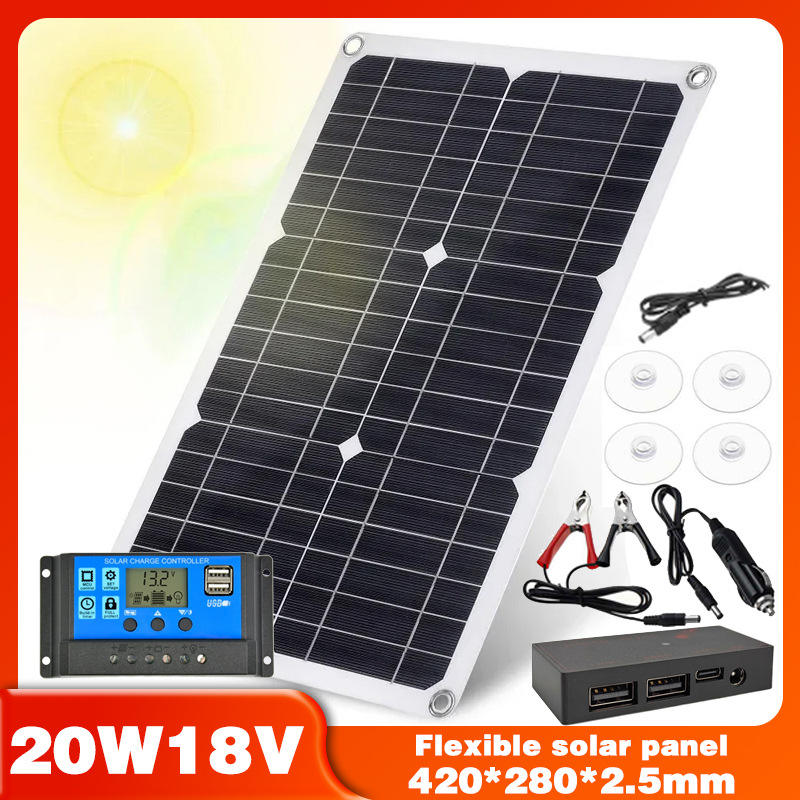 Foldable Solar Panel 20W 18V Monocrystalline Portable Outdoor Camping RV Use