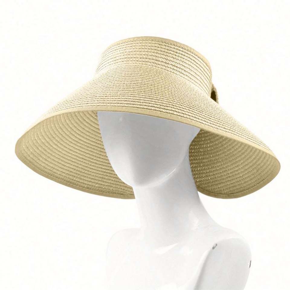 หมวกฟางพับได้หมวกกันแดดทรงกลวงสีทึบหมวกปีกกว้างสำหรับฤดูร้อน