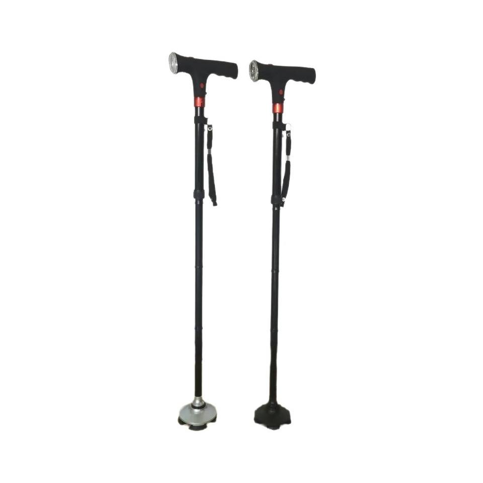 ไม้เท้าพับได้ อลูมิเนียมอัลลอยด์ ปรับความยาวได้ 85-97 ซม. สีดำ ไม้เท้าเดินป่าพร้อมไฟ LED และฟังก์ชั่นสัญญาณเตือน
