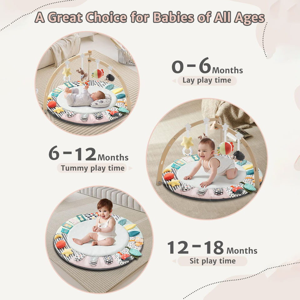 เสื่อไม้พับได้สำหรับเด็กเล่นยิมพร้อมของเล่นฝึกประสาทสัมผัส7ชิ้นเสื่อเวลาสำหรับเด็กทารกแรกเกิดเสื่อออกกำลังกาย6โซนเพื่อพัฒนาการ