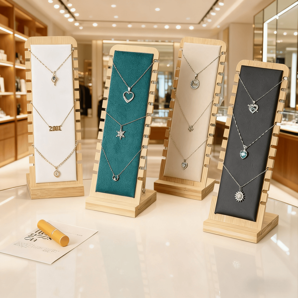 ขาตั้งโชว์สร้อยคอไม้พับได้ พื้นผิวกำมะหยี่ พกพาสะดวก สำหรับจัดแสดงในร้านขายเครื่องประดับ ขายส่งจากโรงงาน