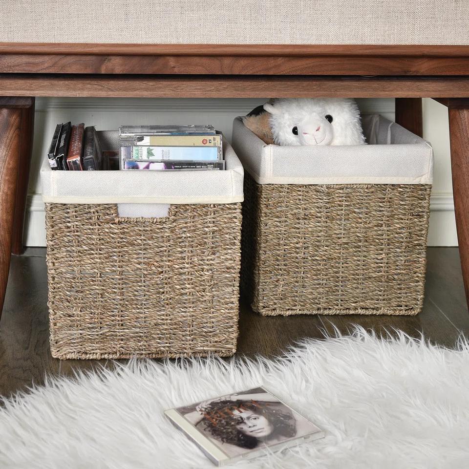 ตะกร้าหวายทะเลสี่เหลี่ยมพับได้:ขนาด: กว้าง 10.2 x สูง 10.6 นิ้ว