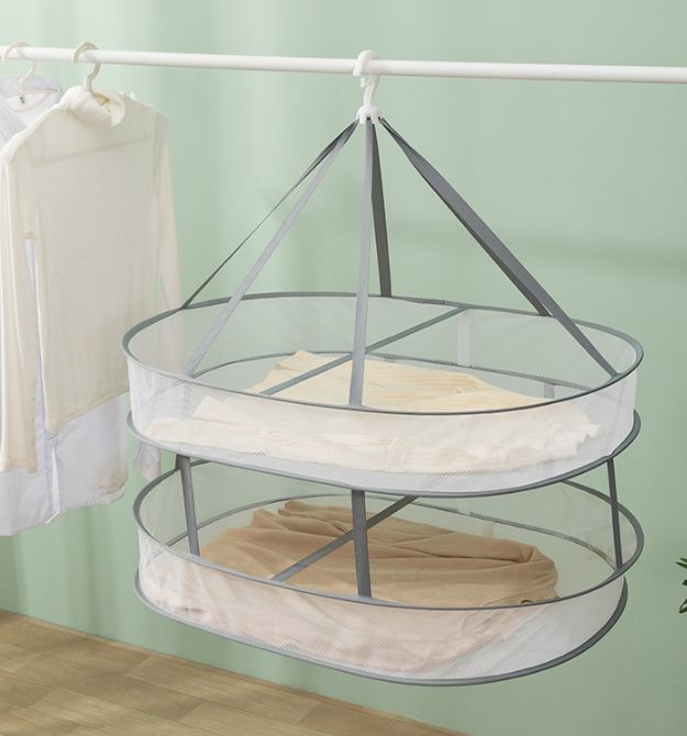 ราวตากผ้าตาข่ายพับได้ 2 ชั้น สำหรับตากเสื้อผ้า ราวตากผ้าพับได้ สำหรับใช้ภายในและภายนอกอาคาร