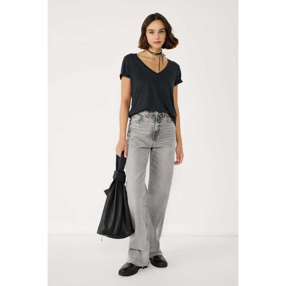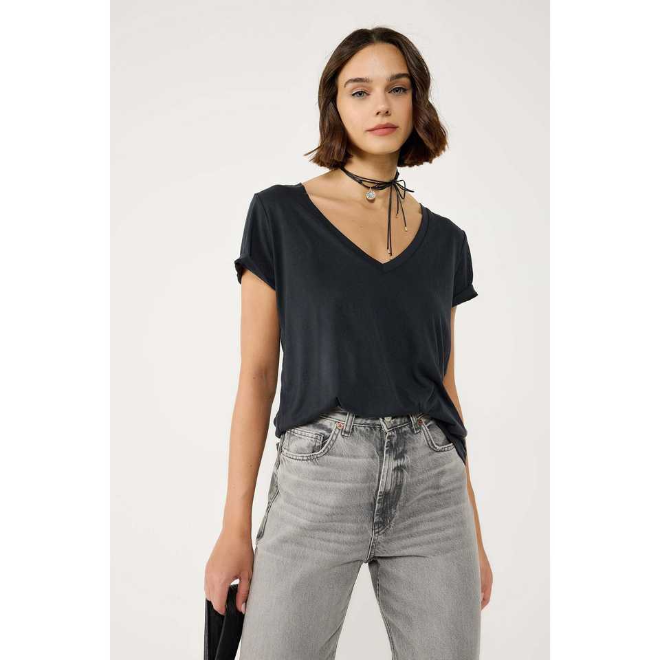 เสื้อยืดคอวีพับได้ 100% โพลีเอสเตอร์