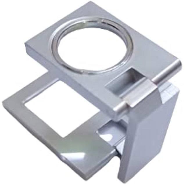 แว่นขยายอะลูมิเนียมแบบพับได้ 10 เท่า พร้อมสเกล เลนส์ 28 มม. เครื่องมือตรวจสอบการตั้งค่าอัญมณี สำหรับงานสิ่งทอ การตัดเย็บเสื้อผ้า และแว่นตา