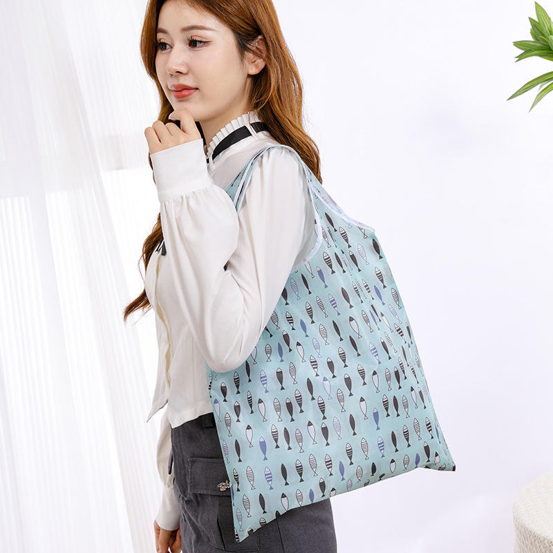 ถุงพับโพลีเอสเตอร์พับถุงช้อปปิ้งนำมาใช้ใหม่เป็นมิตรกับสิ่งแวดล้อมกระเป๋าถือ