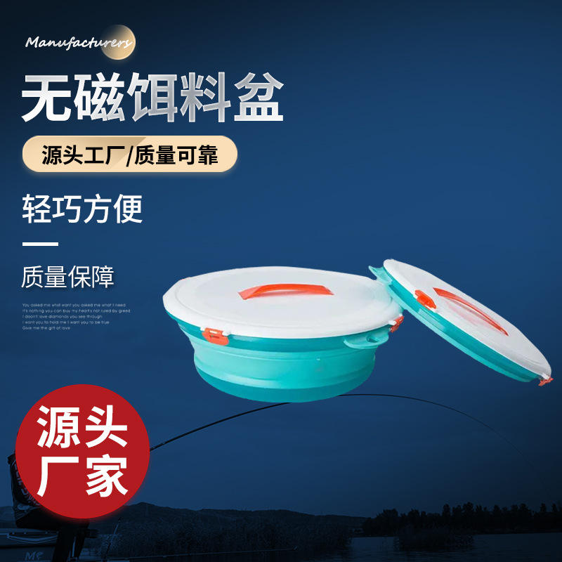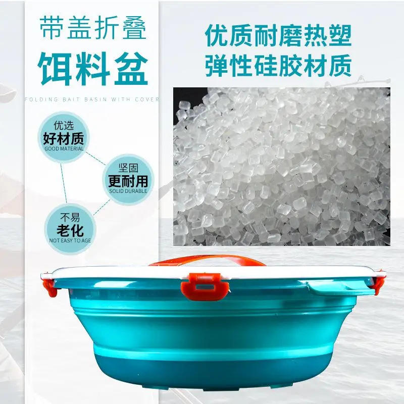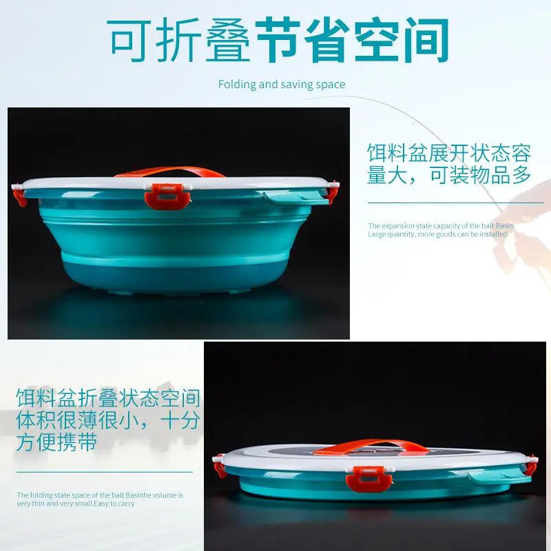 อ่างใส่เหยื่อแบบพับได้พร้อมฝาปิด เส้นผ่านศูนย์กลาง 330 มม. ชามใส่อาหารพลาสติกทนทานสำหรับการตกปลากลางแจ้ง