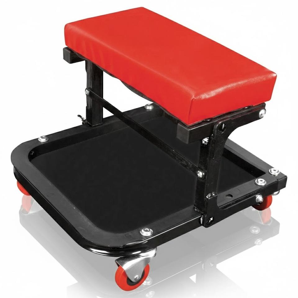 เก้าอี้ช่างแบบพับได้ทรงตัว C พร้อมถาดวางเครื่องมือ ล้อเลื่อนหมุนได้ 2 นิ้ว สำหรับงานซ่อมบำรุงรถยนต์ GAPGAR032