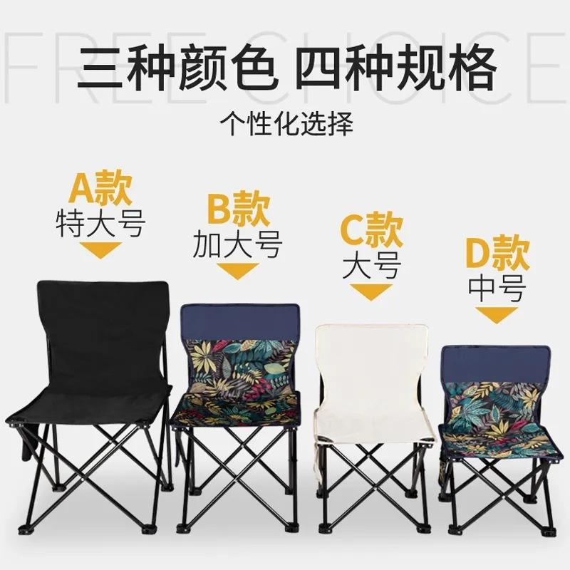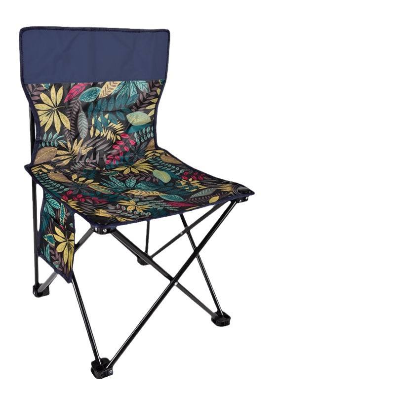 Folding Chair Iron Frame Portable Outdoor Beach Camping Fishing Travel Use Pattern Fabric Seat