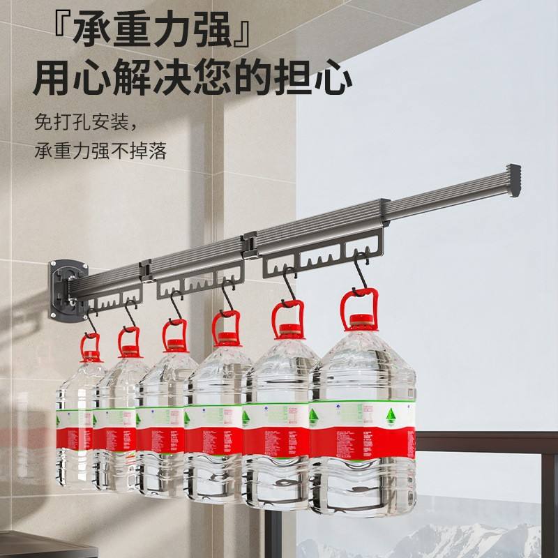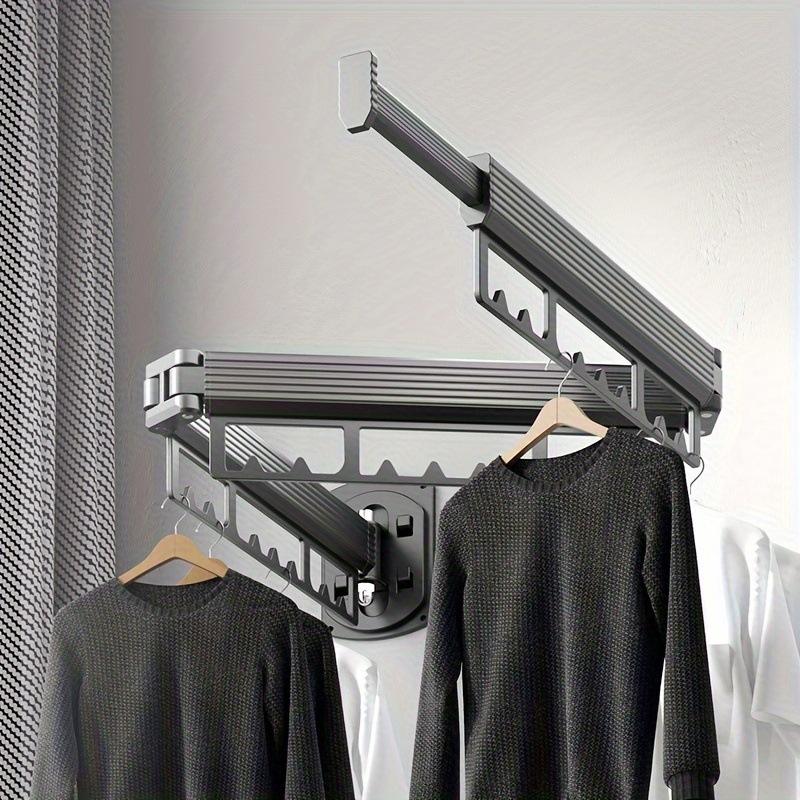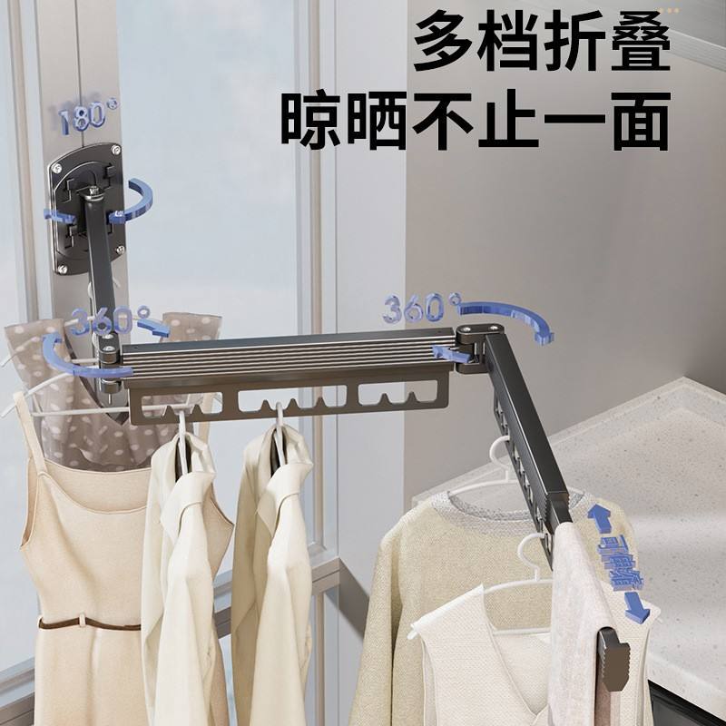 ราวตากผ้าพับได้แบบติดผนังสำหรับระเบียงในร่ม ไม่ต้องเจาะผนัง ราวแขวนเสื้อผ้าแบบลอยติดหน้าต่าง