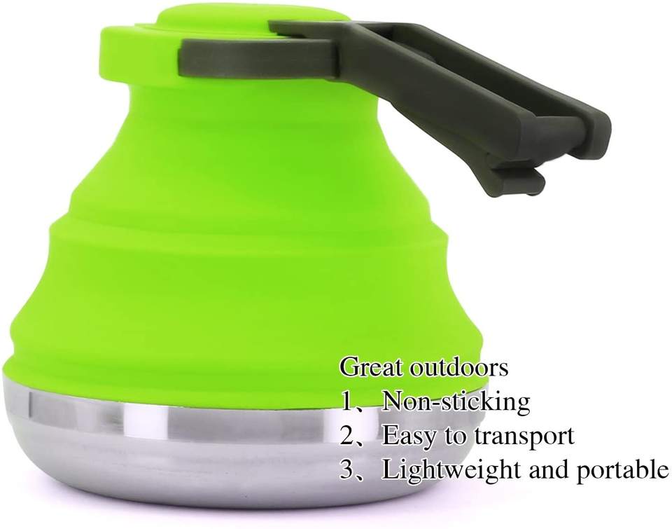 หม้อทำอาหารซิลิโคนแบบพับได้ก้นสแตนเลสหม้อทำอาหารพับได้ขนาดกะทัดรัดใช้กับเตาแก๊สเดินป่าได้