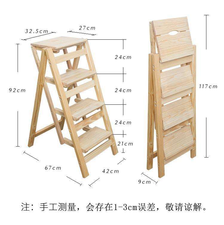 Folding Cross-Shaped Solid Wood Telescopic Four-Step 150kg Load Capacity Household Ladder Stools Apartment Modern Manual Lock
