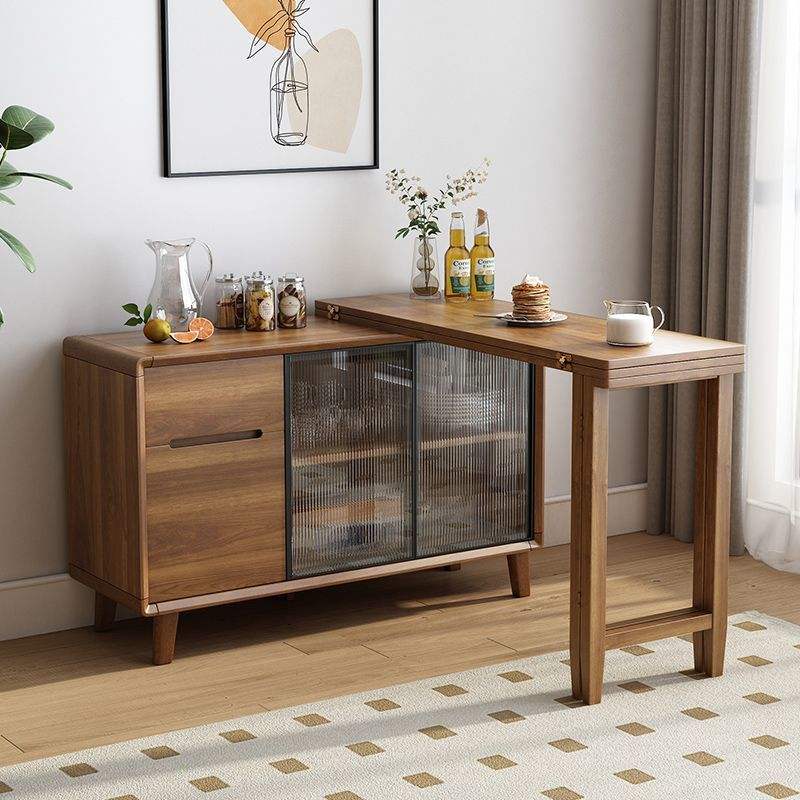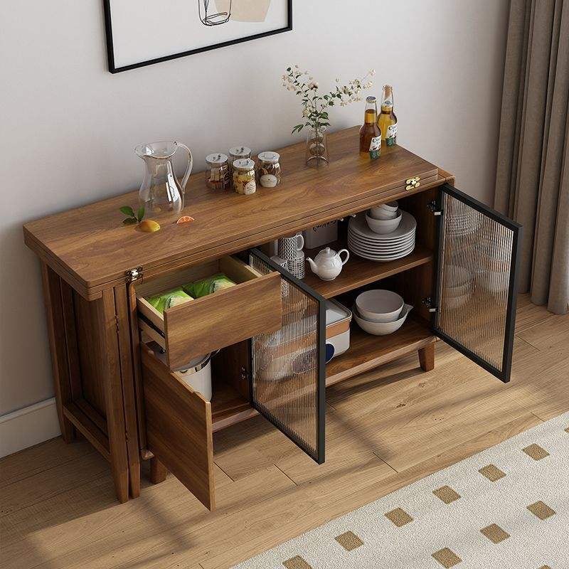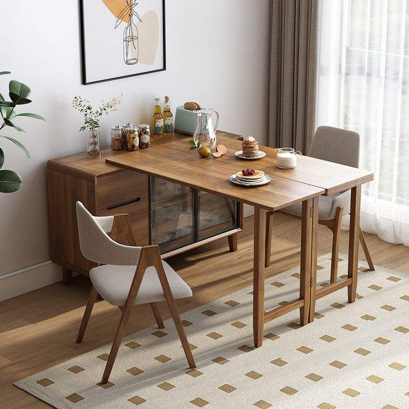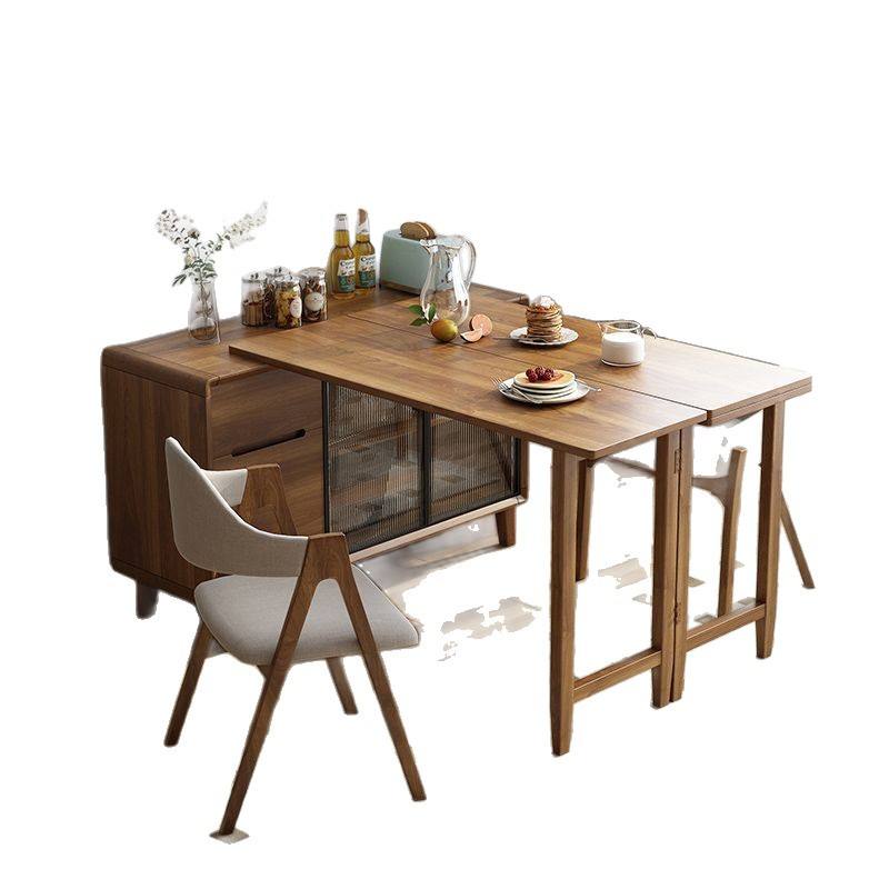 โต๊ะอาหารพับได้พร้อมตู้ข้างในตัว สไตล์จีน หน้าไม้ทรงสี่เหลี่ยมผืนผ้า สำหรับ 4 ที่นั่ง ขยายได้ ใช้ในห้องครัวและห้องนั่งเล่น