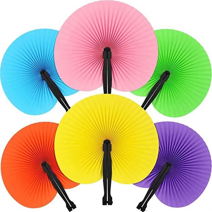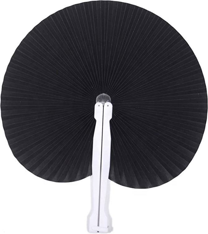 พัดกระดาษแบบมือถือพับได้สีดำสำหรับงานแต่งงานรูปทรงกลมพร้อมที่จับพลาสติก
