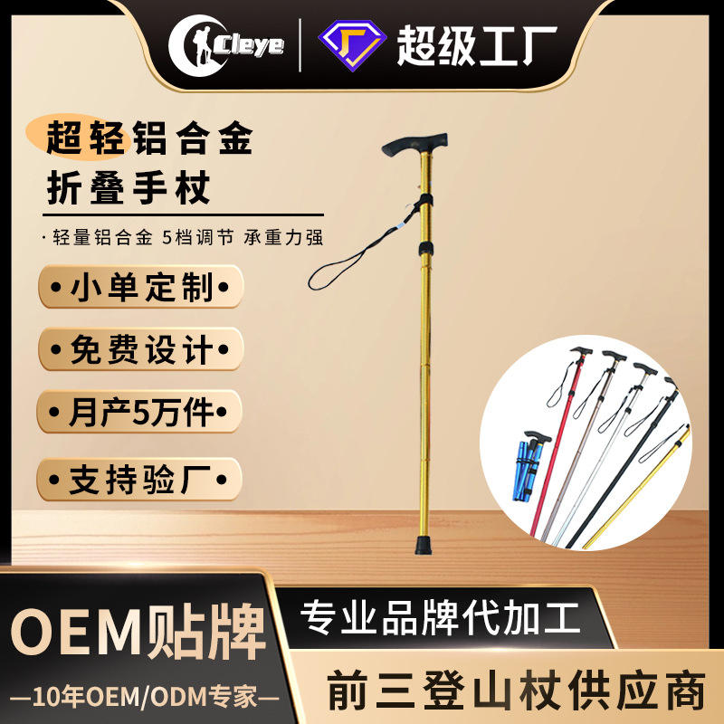 ไม้เท้าพับได้ปรับระดับได้ ทำจากอลูมิเนียมอัลลอยด์ สำหรับเดินป่า เดินเขา ใช้สำหรับผู้สูงอายุ เดินทาง ปีนเขา และเป็นอุปกรณ์ช่วยพยุง