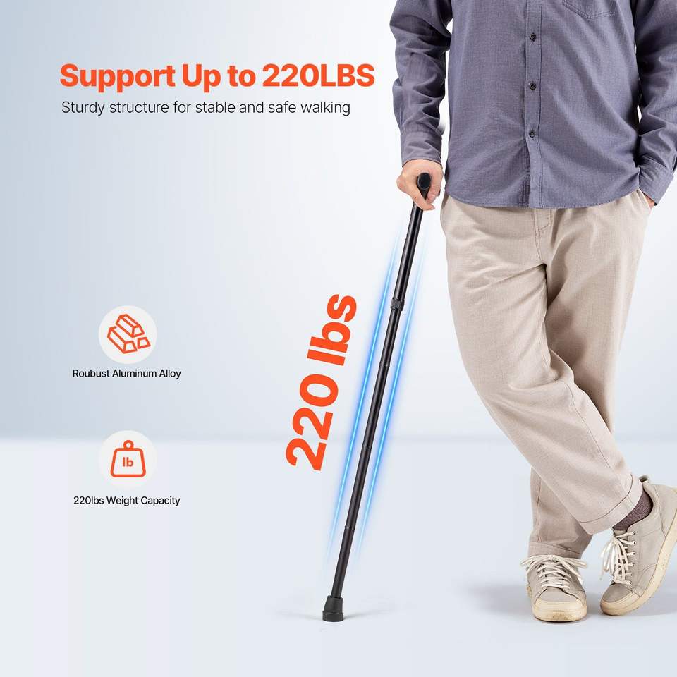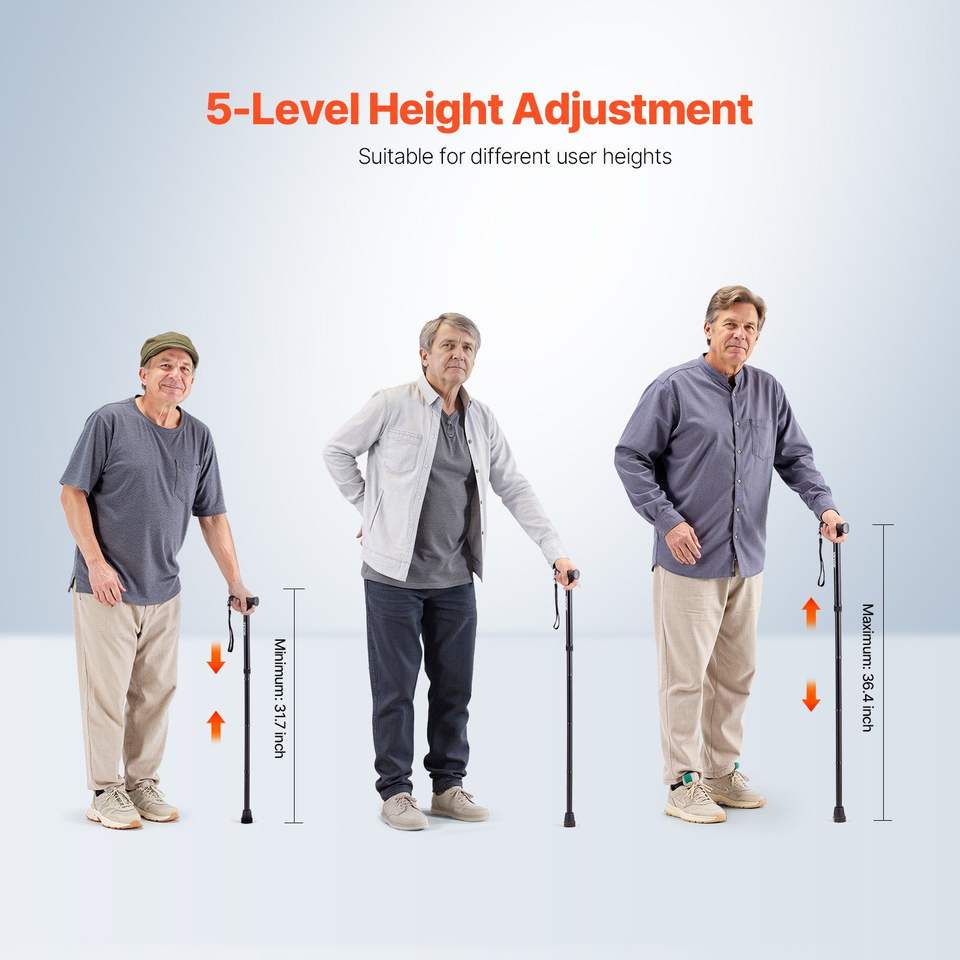 ไม้เท้าพับได้น้ำหนักเบาสำหรับผู้ชายและผู้หญิง ปรับความสูงได้ 5 ระดับ ปลายยางกันลื่น ไม้เท้าพับได้แบบพกพา