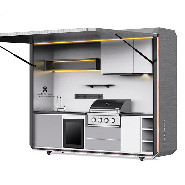 ห้องครัวกลางแจ้งแบบพับได้มีหลายสไตล์ให้เลือกฉากรับประทานอาหารในสวนบูรณาการผลิตภัณฑ์ใหม่พื้นที่ทำอาหารบาร์บีคิว