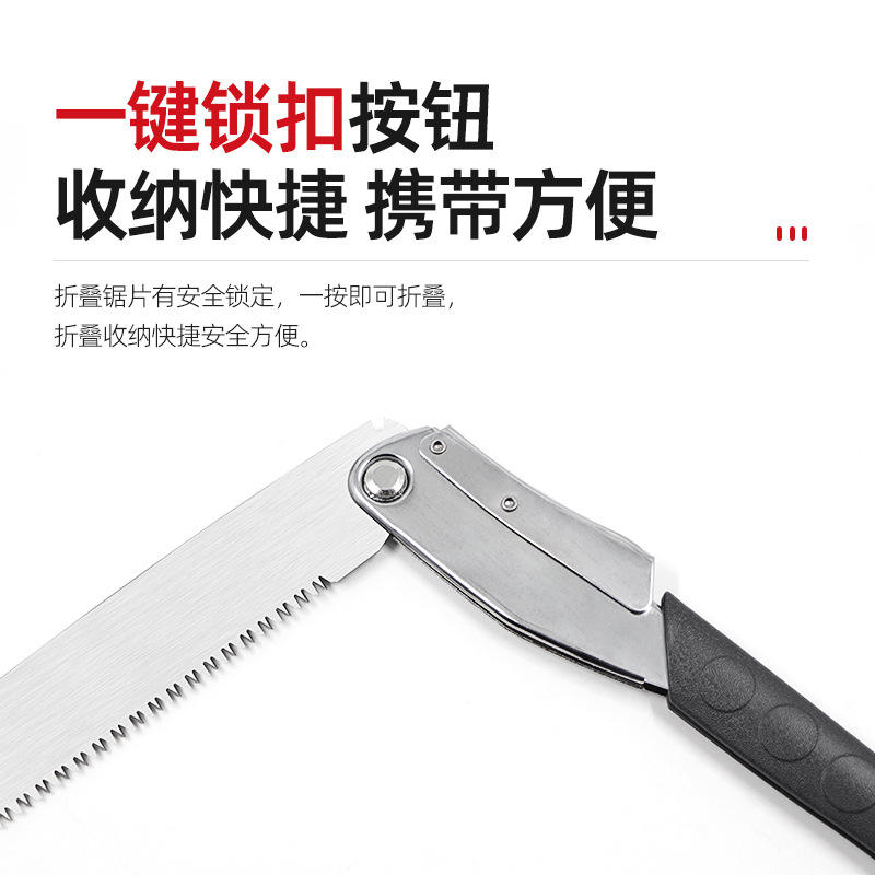 เลื่อยพับได้ 360 มม. ใบมีดเหล็กคาร์บอนสูงแบบขยาย ด้ามจับสีดำ เครื่องมือตัดแต่งกิ่งในสวน ใช้งานกลางแจ้ง