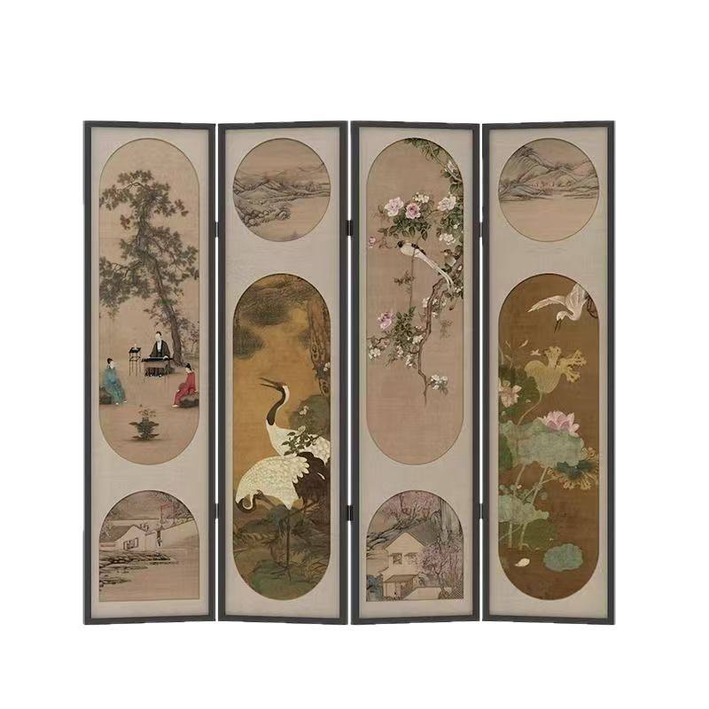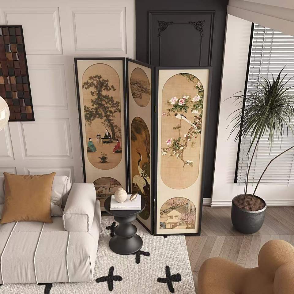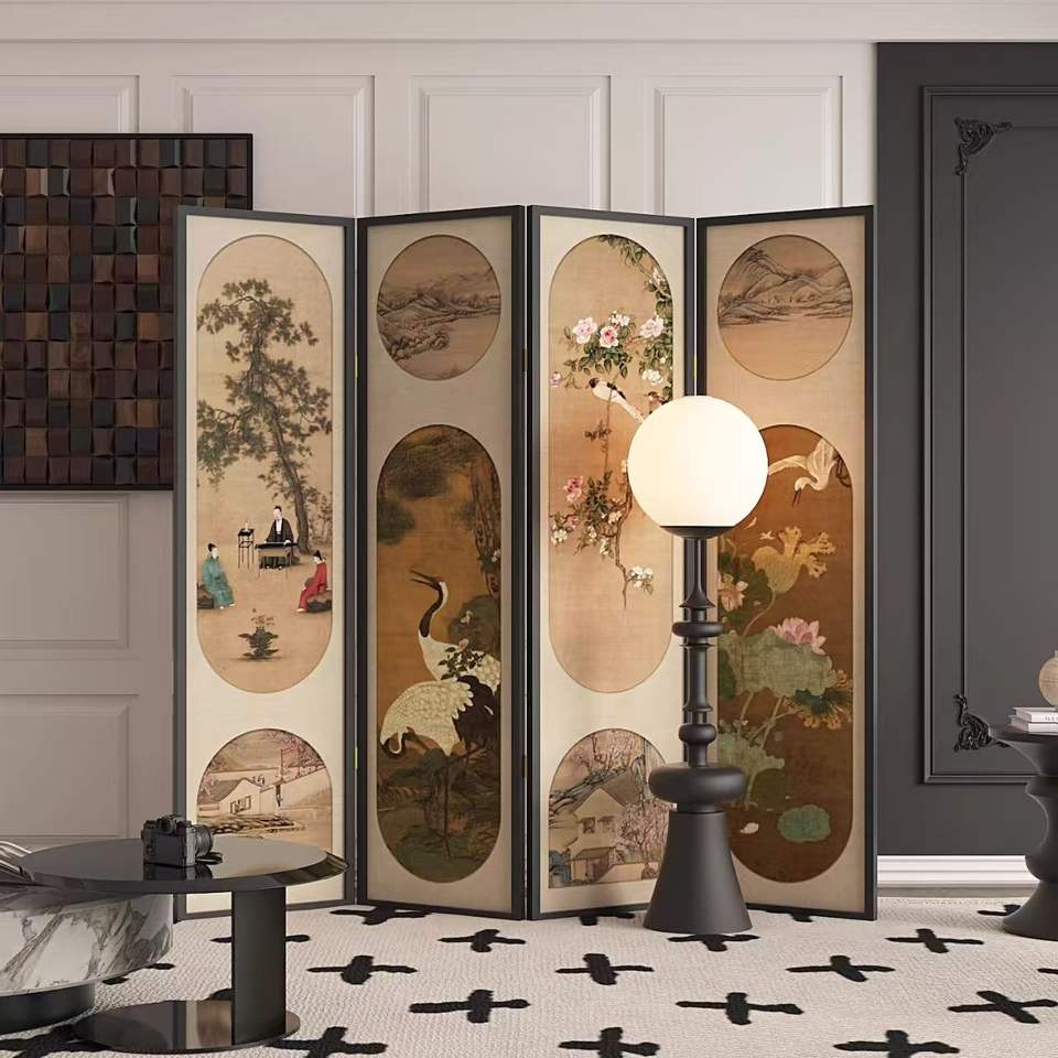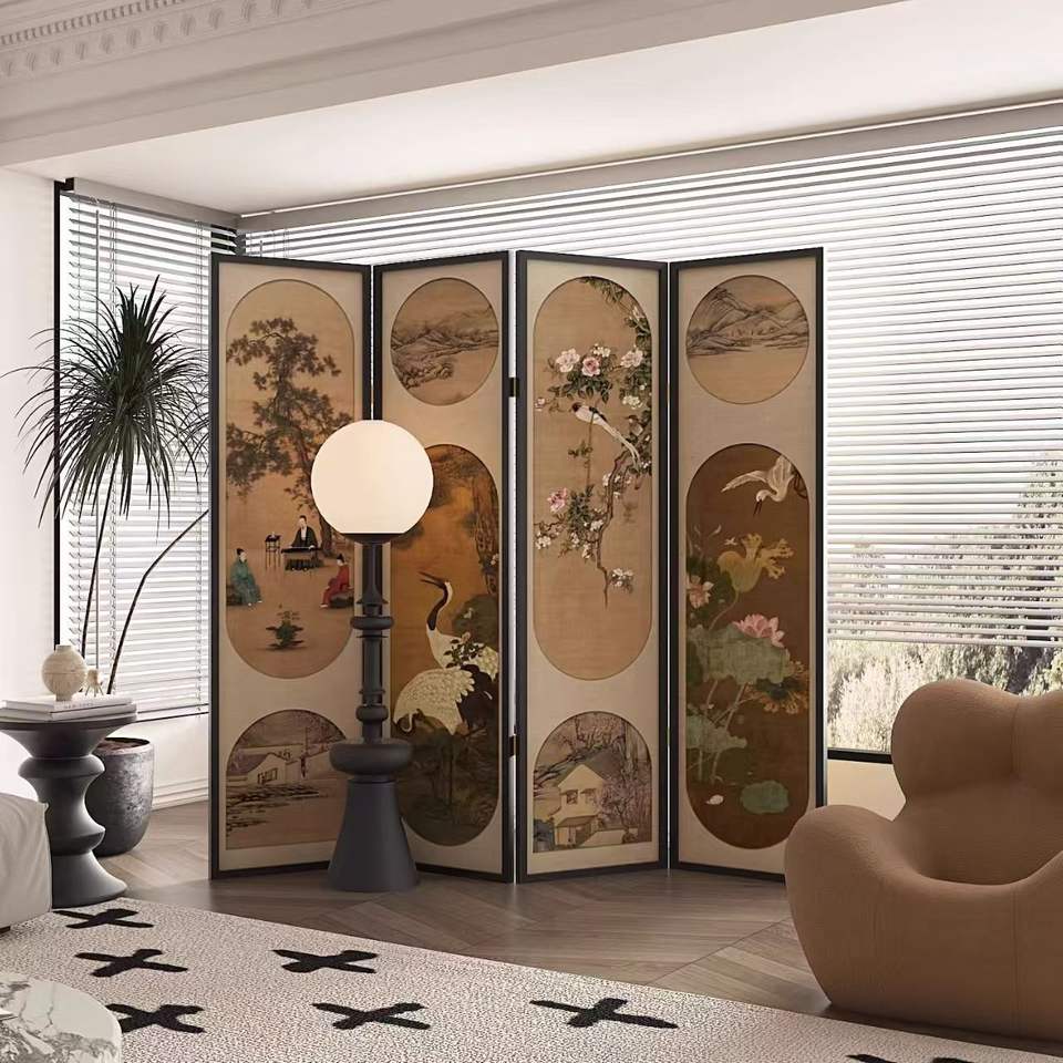 ฉากกั้นหน้าจอแบบพับได้สำหรับห้องนั่งเล่นสำนักงานตกแต่งห้องนอนไม้แข็งแบบพับได้พิมพ์ลาย