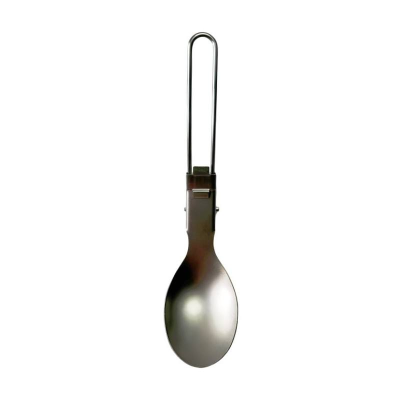 ช้อนสแตนเลสแบบพับได้พร้อมด้ามจับแบบตะขอ อุปกรณ์ตั้งแคมป์ขนาดกะทัดรัดแบบพกพาสำหรับใช้กลางแจ้ง ดีไซน์พับได้