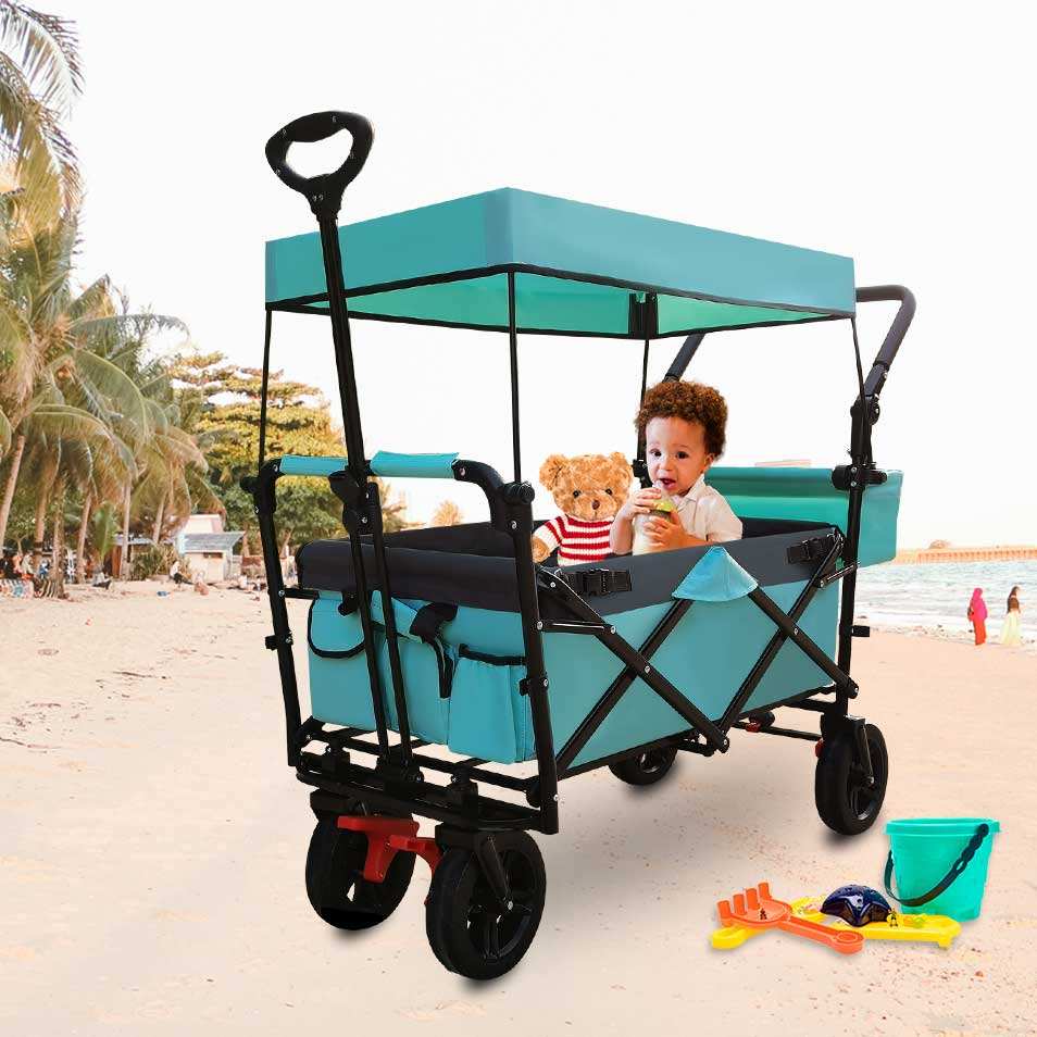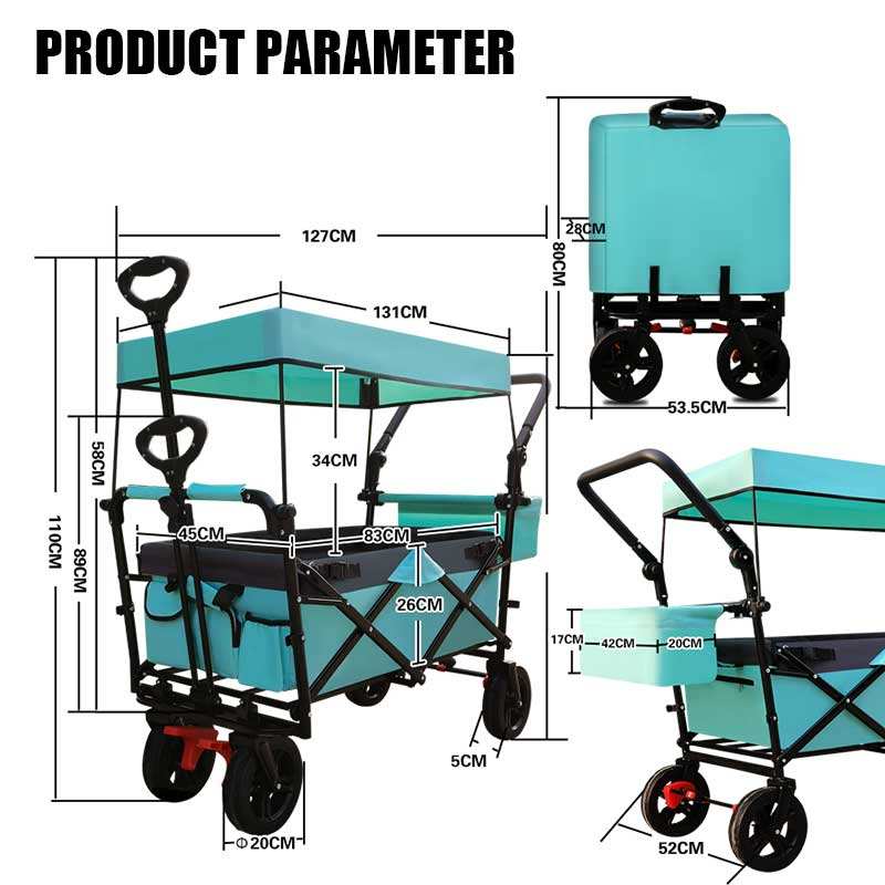 เกวียนพับได้รถเข็นสำหรับสวนกลางแจ้งความจุขนาดใหญ่เกวียนพับได้พร้อมหลังคาและยูทิลิตี้