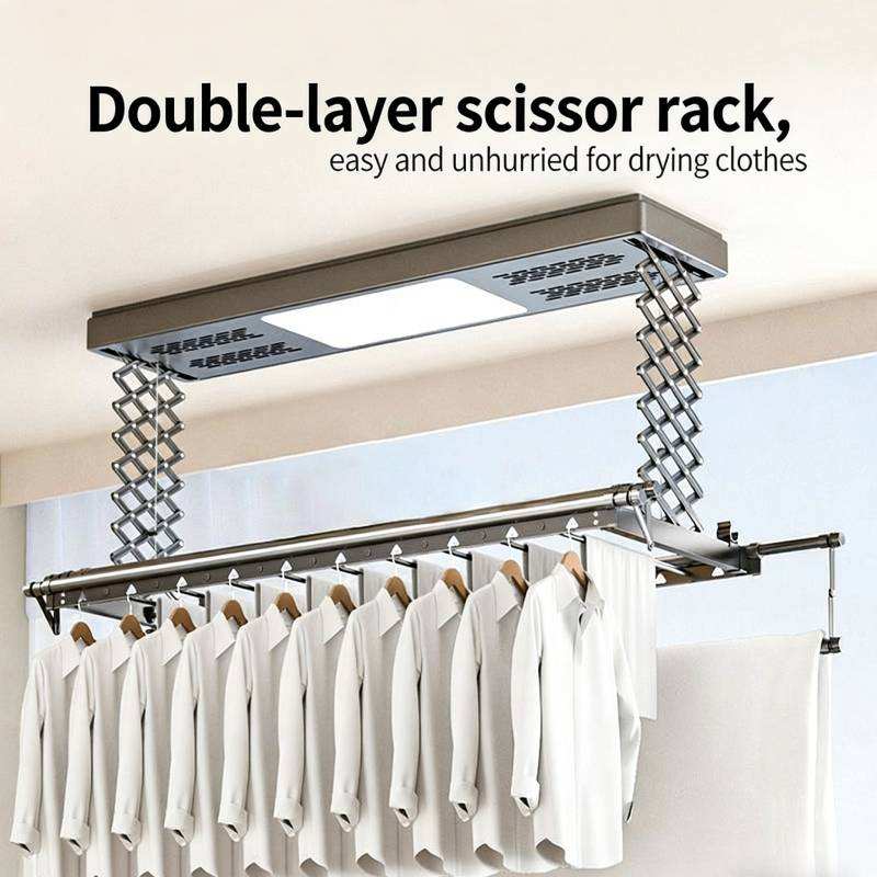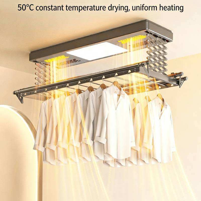 ราวตากผ้าอลูมิเนียมอัลลอยด์แบบพับได้ ยืดหดได้ ควบคุมด้วยรีโมท พร้อมไฟส่องสว่างและระบบเป่าลมแห้ง 4 in 1