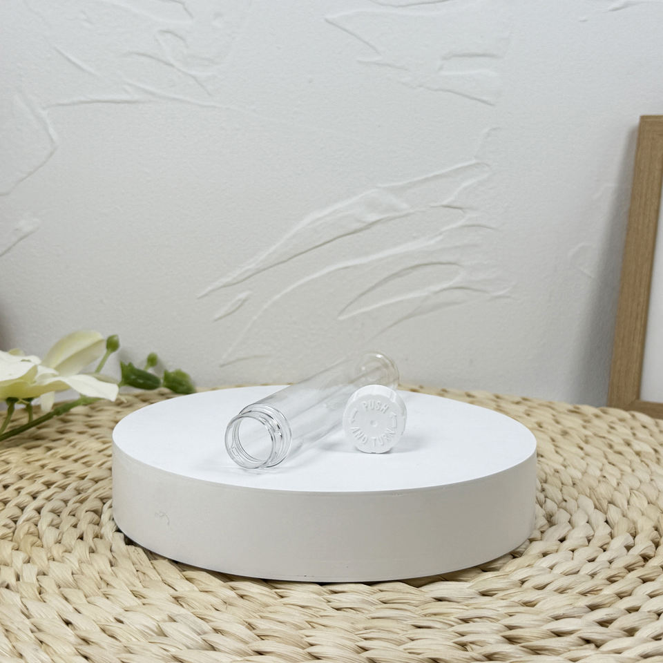 ขวดหลอดทดลองพลาสติกสีเหลืองอำพันขนาด10มล. 15มล. 20มล. 25มล. ขวด PET พร้อมฝาปิดที่งัดแงะ
