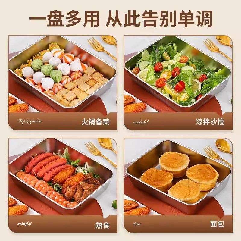 ภาชนะเก็บอาหารสแตนเลสเกรดอาหาร 304 พร้อมฝาปิดแบบพลิกทรงสี่เหลี่ยมผืนผ้าสำหรับใช้ในตู้เย็นและการเดินทาง