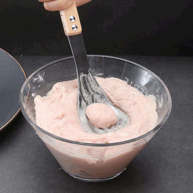 เครื่องทำลูกชิ้นสแตนเลสเกรดอาหาร 304 พร้อมด้ามจับไม้ อุปกรณ์ครัวสำหรับทำลูกชิ้นปลาและกุ้งเผาแบบโฮมเมด