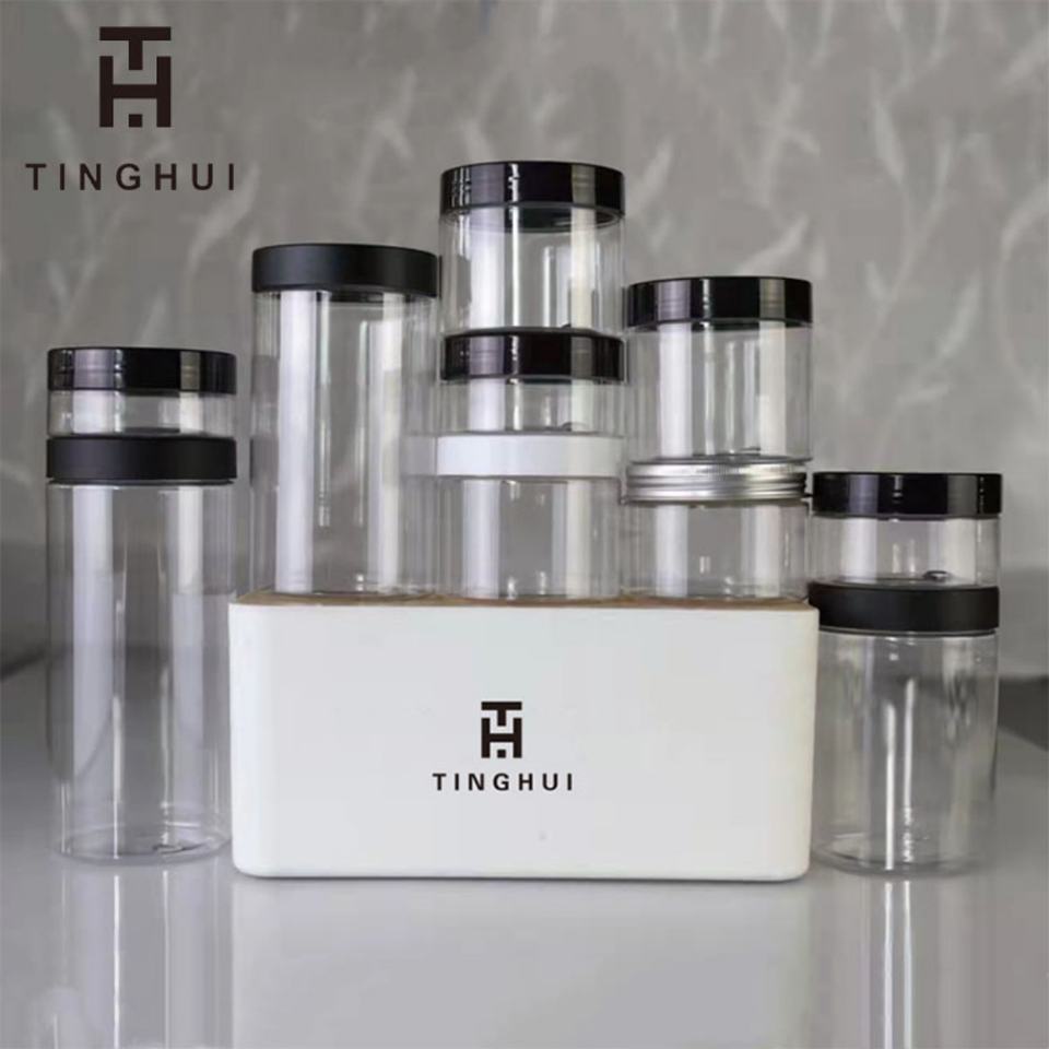 ขวดพลาสติก PET เกรดอาหาร ขนาด 50 มล. 100 มล. 150 มล. 1 ออนซ์ 4 ออนซ์ 6 ออนซ์ 8 ออนซ์ 12 ออนซ์ 16 ออนซ์ สำหรับครีมเครื่องสำอาง เจลใส่ผม สครับขัดผิว บัตเตอร์ พร้อมฝาสีดำ