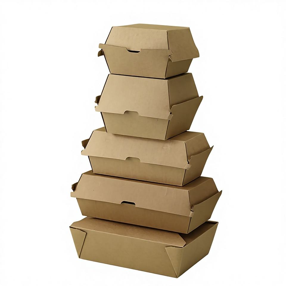 กล่องอาหารแบบอเมริกันสำหรับใส่กลับบ้าน ทำจากวัสดุเกรดอาหาร กล่องเบอร์เกอร์และอาหารจานด่วนแบบใช้แล้วทิ้ง กล่องใส่ขนมและอาหารแบบนำกลับบ้าน