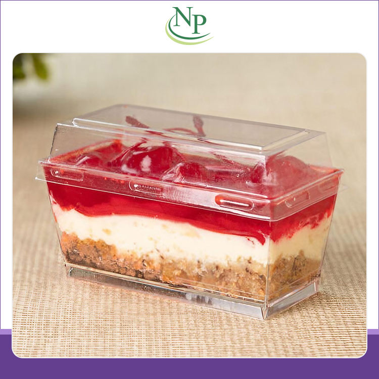 ภาชนะพลาสติกทรงสี่เหลี่ยมสำหรับใส่มูส ขนาด 125 มล. ผลิตจากพลาสติก NP PS 15 ปลอดสาร BPA และมาตรฐานสำหรับอาหาร เหมาะสำหรับร้านเบเกอรี่และงานจัดเลี้ยง ราคาประหยัด