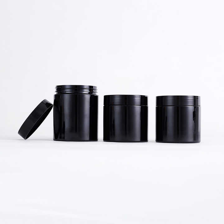 Food-Grade Black Plastic Pet Storage Containers 100g 200g 150g 200g 250g 500g with Lids for Food Storage